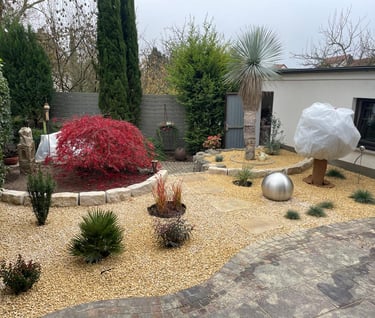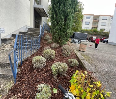 Tolles Ergebnis! Unser großer Vorgarten am Haus wurde von der Firma MADU Hausmeisterservice bearbeitet. Heckenschnitt, Sträucher in Form geschnitten, kleine Bäume in Form geschnitten, Vlies, Rindenmulch, etc.